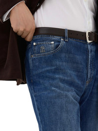 Lightweight denim traditional fit five-pocket trousers