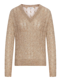 -V-neck sweater -Braided pattern -Slimfit Made in Italy Composition: Mohair 38% Mohair 28%Polyamide 16%Cotton 10%Wool 8%Polyester Color code: C3592 BROWN MPG731302P