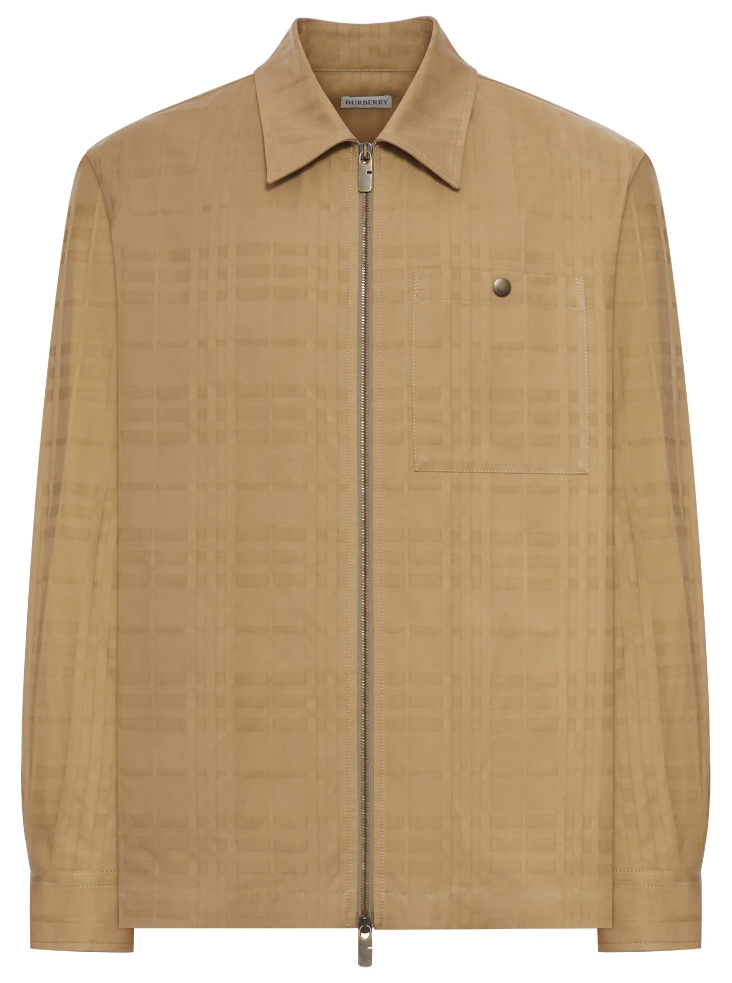 - Shirt collar - Two-way zip closure - Snap-button chest pocket - Snap-button cuffs - Textured check - Oversized fit - 100% cotton - Color: Beige Made in Italy Composition: Cotton 100% Cotton Color code: C4776 SANDSTORM BEIGE CHK 8121988