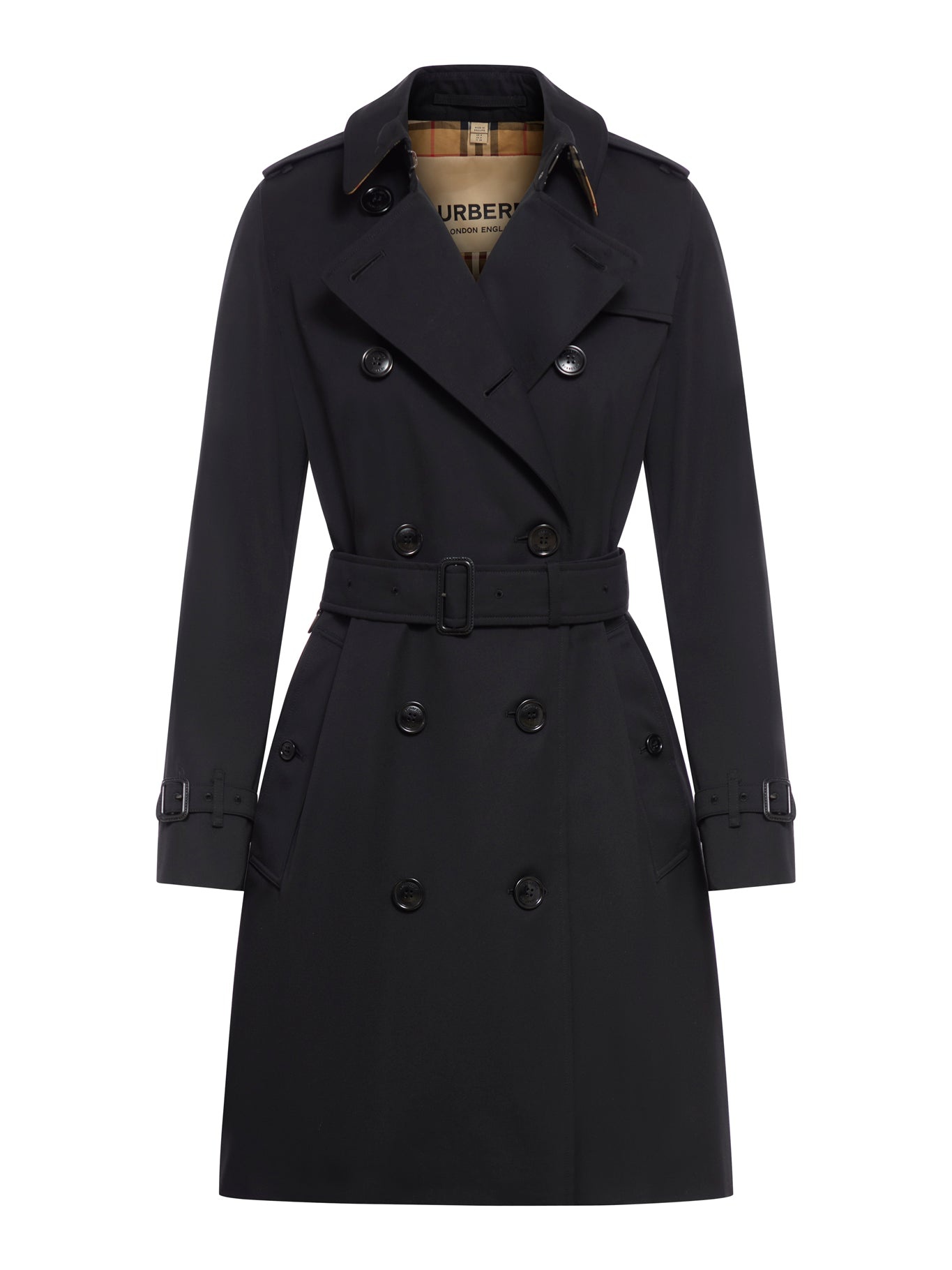 -Double-breasted closure with buttons -Neck with hook closure -Chinstrap -Shoulder pads -Belt -Welt pockets with side buttons -Cuffs with strap -Back slit with button -Burberry Check lining and undercollar-Double-breasted closure with buttons -Neck with hook closure -Chinstrap -Shoulder pads -Belt -Welt pockets with side buttons -Cuffs with strap -Back slit with button -Burberry Check lining and undercollar Made in Uk Composition: Cotton 100% cotton Color code: A1189 BLACK 8079409