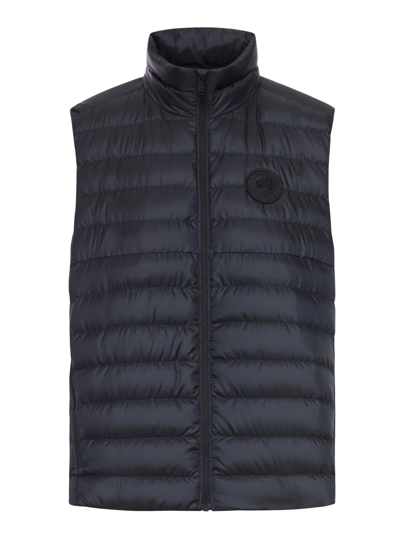 - High neck - Sleeveless - One-way zipper - Embroidered logo patch on the chest - Folds into the right pocket - Transforms into a packable bag with a carrying strap - Two zippered hand pockets - One internal drop-in pocket, one zippered security pocket - Drawstring hem - Color: Black Made in Canada Composition: Polyurethane 100% polyurethane Color code: 9061 BLACK CG2490WT