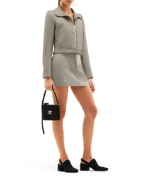 - Lined mini skirt - Vinyl - White AC logo on the front - Waistband with white lacquered snaps - Zip fly - Model is 1.76 m tall and wears a size 36 - Color: Light Mocha Made in Serbia Composition: Cotton 88% Cotton 10% Polyurethane 2% Elastane Color code: 1099 LIGHT MOCHA 223CJU001VY0014