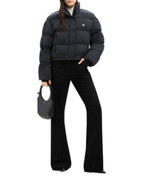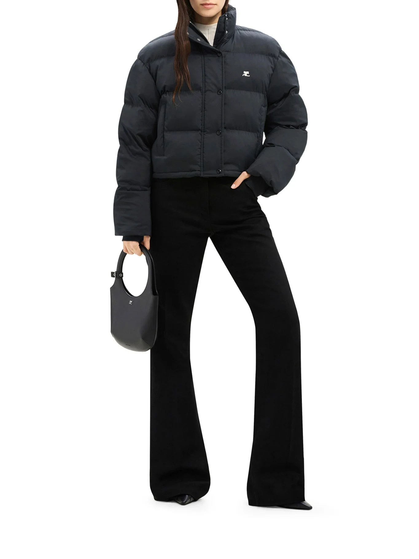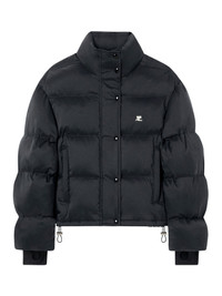 -Short nylon down jacket with high collar -Six front buttons -Two side pockets with zip -AC logo embroidered at the center of the front -Glove sleeves -Courreges embroidery on the back shoulder - Color: black Made in Lithuania Composition: Polyester 100% polyester Color code: 9999 BLACK 323CMA106PL0112