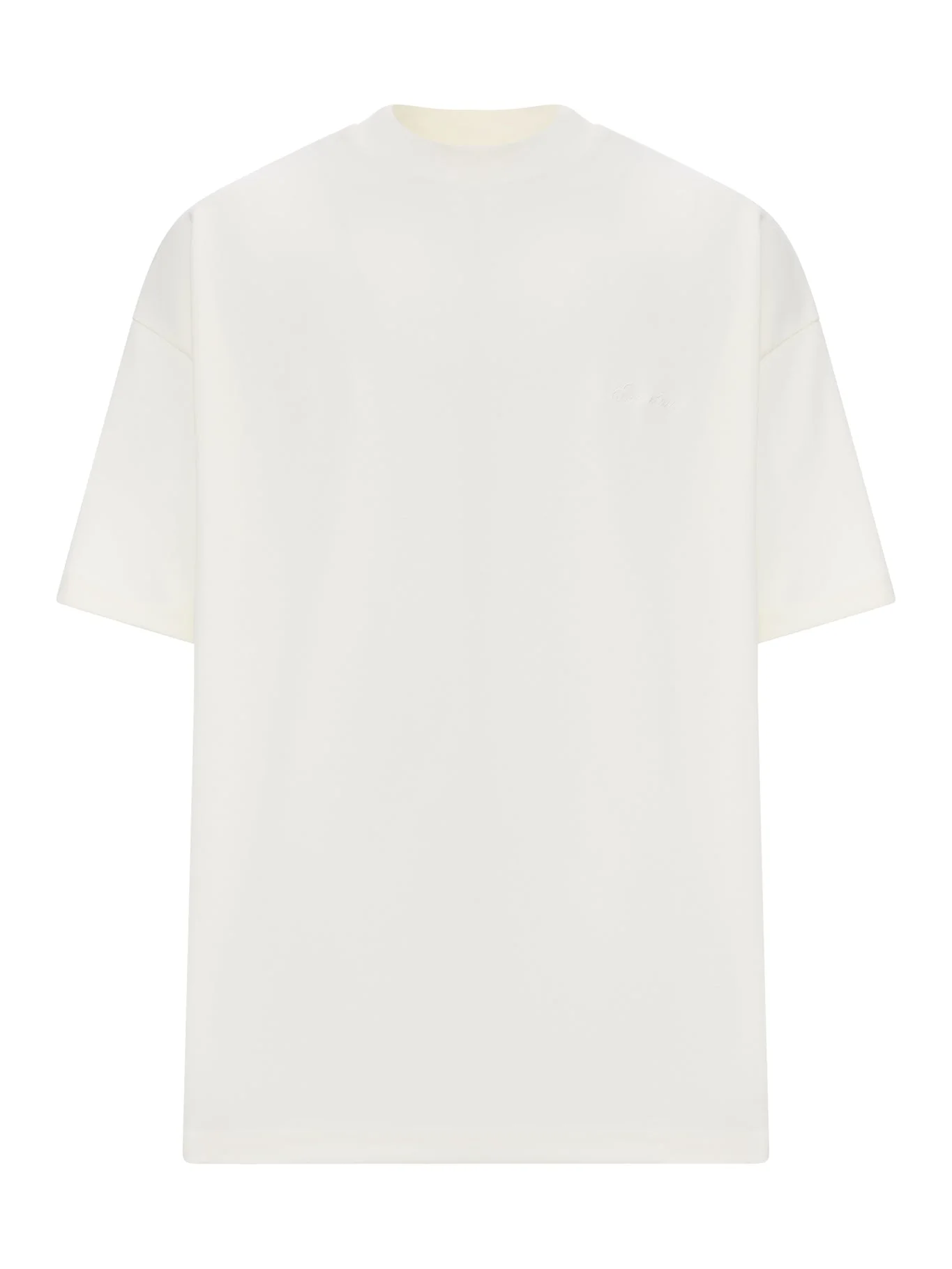 - Crew neck - Dropped shoulders - Short sleeves - Tone-on-tone embroidered logo on the chest - Oversized fit - Color: White Made in China Composition: Cotton 80% Cotton 20% Polyester Color code: IVORY 125SP264413F