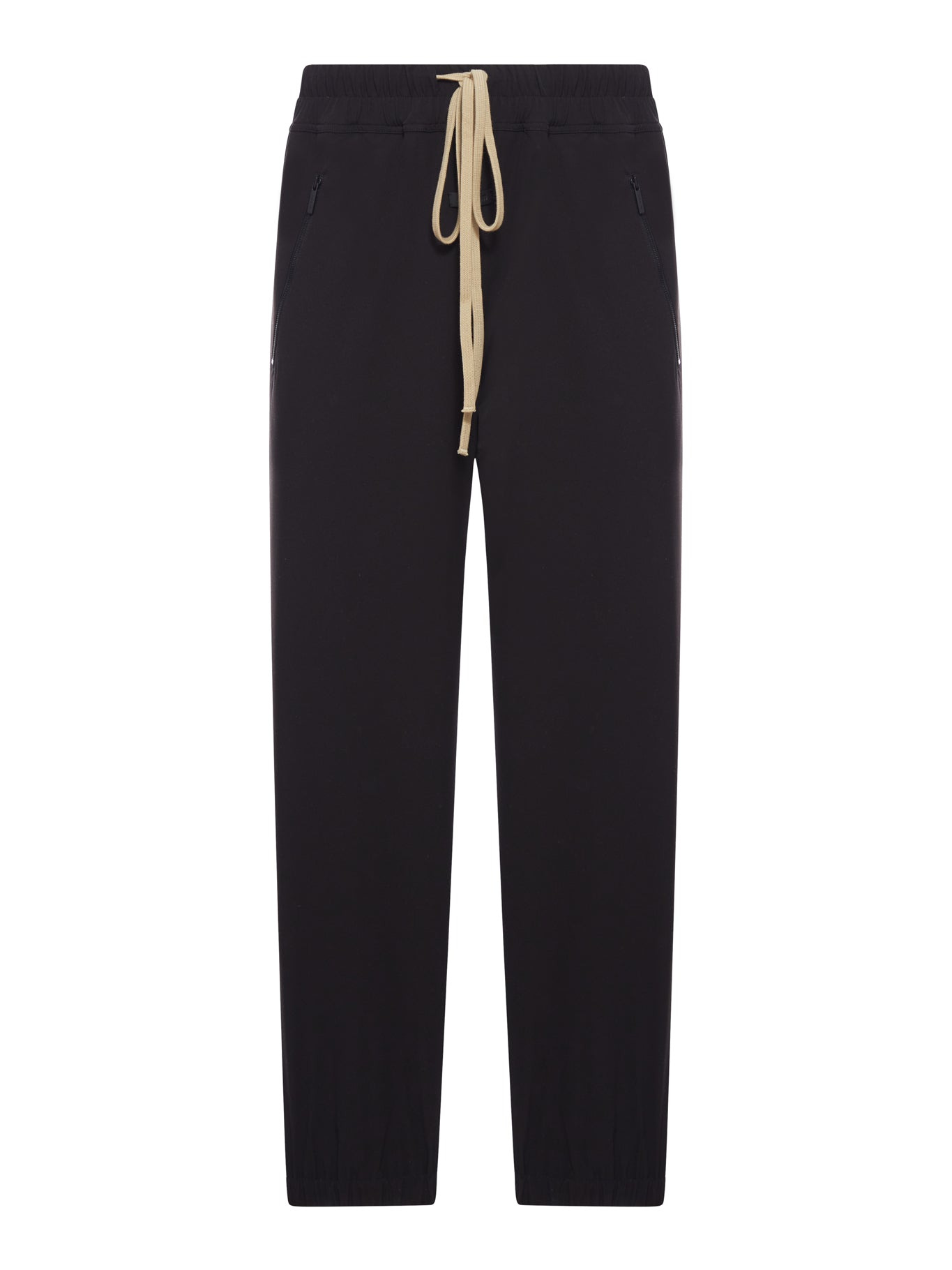 - Nylon blend pants - Classic straight leg - Ankle zips - Elastic waist - Extended drawstring - Side pockets - Leather Fear of God label Color code: 001 BLACK FG25FW35353PON