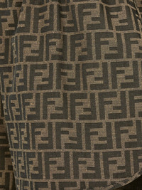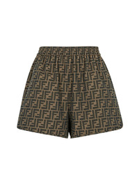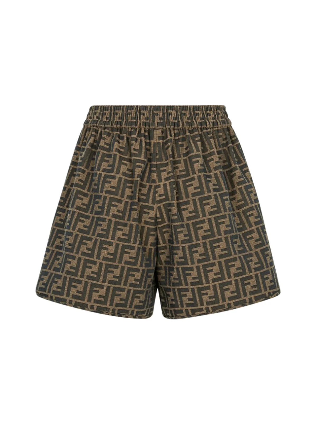 Shorts with elasticated waist and side slits at the bottom. Made of canvas with jacquard FF motif in shades of brown. Made in Italy Composition: 65% poliestere, 35% cotone Color code: F118W TOBACCO FR6259A5W3