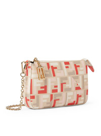 -Baguette fabric pouch -Iconic FF motif in shades of red -Zip closure and zip pull with iconic FF motif -Lined interior -Pocket with card slot -Gold-finish metal accessories -Can be carried by hand, under the arm or cross-body -Removable short thin chain shoulder strap -Removable long leather shoulder strap Made in Italy Composition: Fabric 90% fabric 10% leather Color code: F1SY7 LAVA MLC OS 8BS073AV1Y