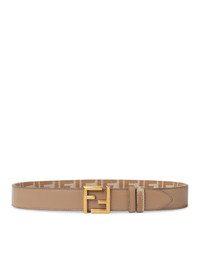 -Reversible belt with loop and iconic FF cufflink closure -Made of beige leather on one side and denim-effect FF jacquard in beige and white tones on the other side -Gold-finish metal accessories -Width: 3.5 cm Made in Italy Composition: Calf Leather 100% Calf Leather Color code: F1SNJ CAPPUCCINO BC TOFFE OBUR 8C0686AUNM