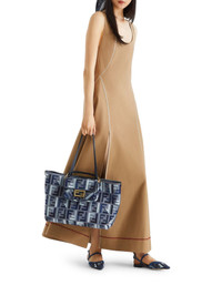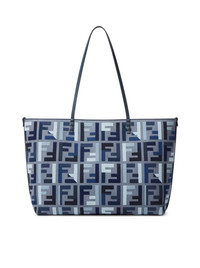 -Large Shopping Bag -Made of blue canvas -Embroidered FF motif in relief in blue tones -Equipped with a removable internal zip pocket in blue leather -Gold-finish metal accessories -Can be carried by hand or on the shoulder -Tone-on-tone calfskin handles Made in Italy Composition: Cotton 95% cotton 55% suade Color code: F1LAZ MIRTO MLC OS 8BH425AV11