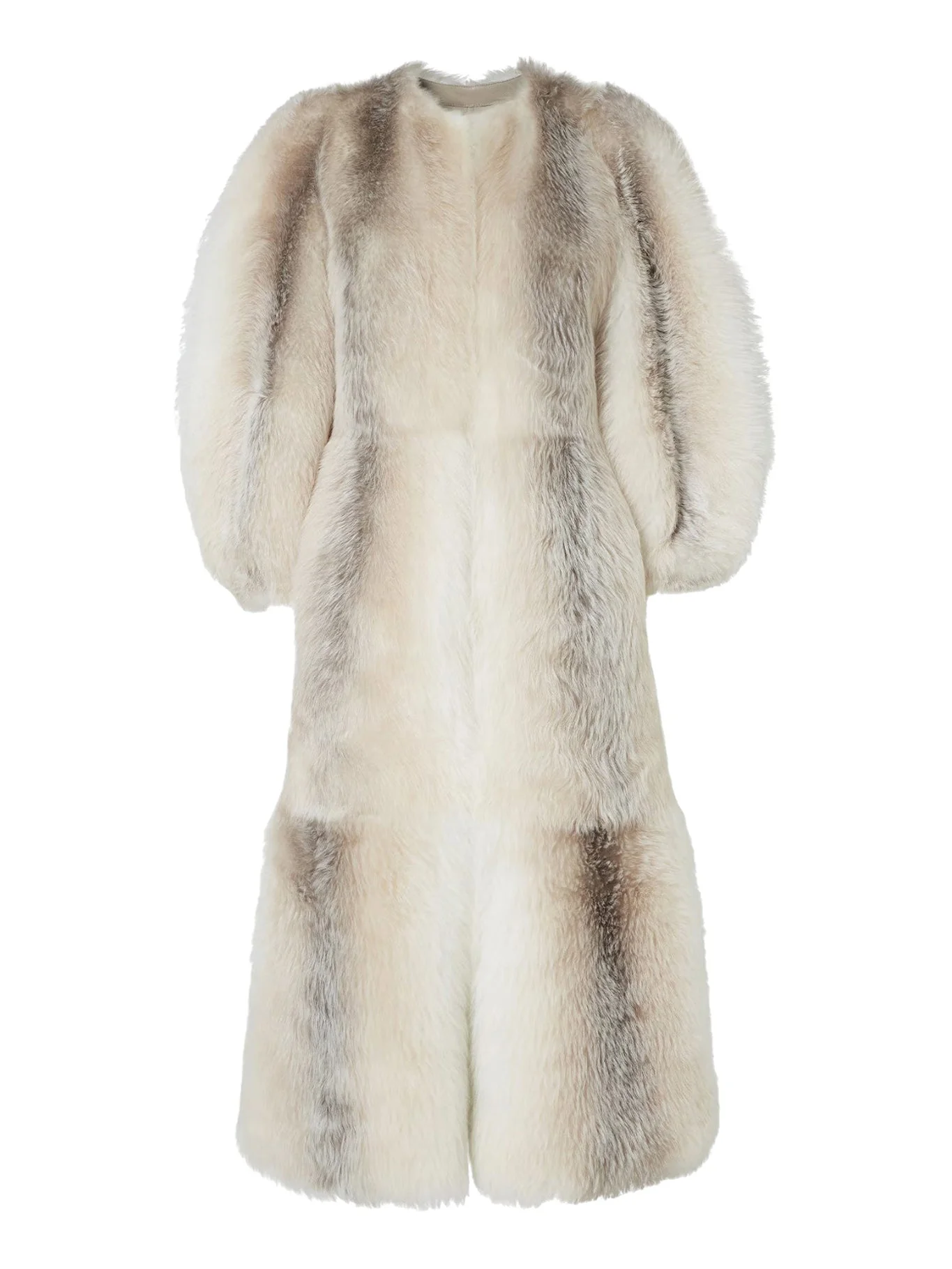 - Oversized coat - Cocoon fit - Crew neck - Wide sleeves - Side pockets - Concealed front closure - Made of white sheepskin - Trompe l`oeil effect - Color: White Made in Italy Composition: Lamb Skin 100% Lamb Skin Color code: F0ZNM WHITE FM5422AYLI