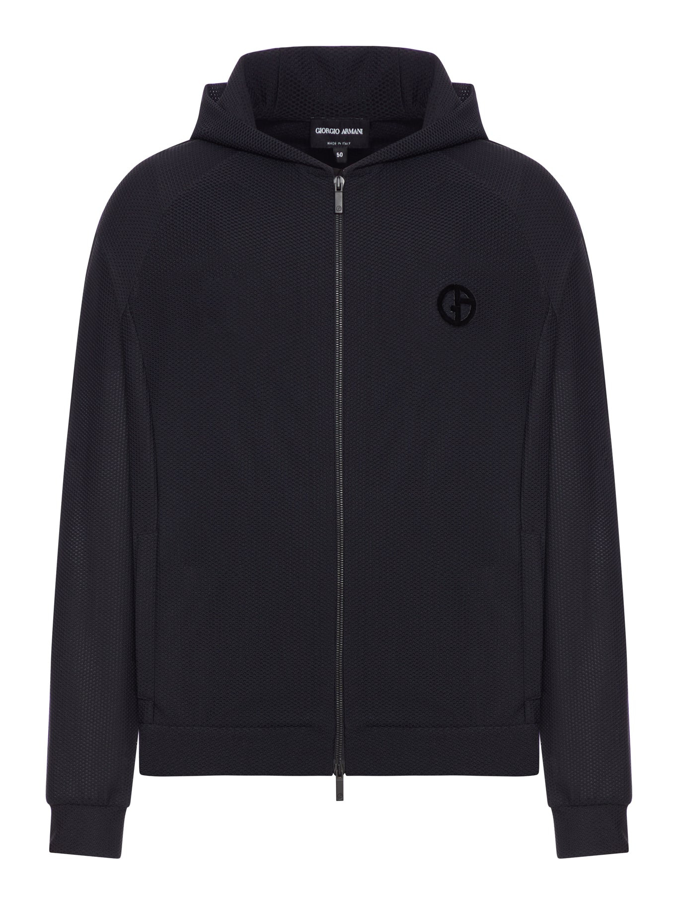 - Hood - Front two-way zip closure - Tone-on-tone embroidered logo - Long raglan sleeves - Elasticated cuffs and hem - Front inset pockets - Unlined - Technical fabric - Regular fit - Black Made in Italy Composition: Polyamide 80% polyamide 20% elastane Color code: UC001 BLACK GM001974TE10045