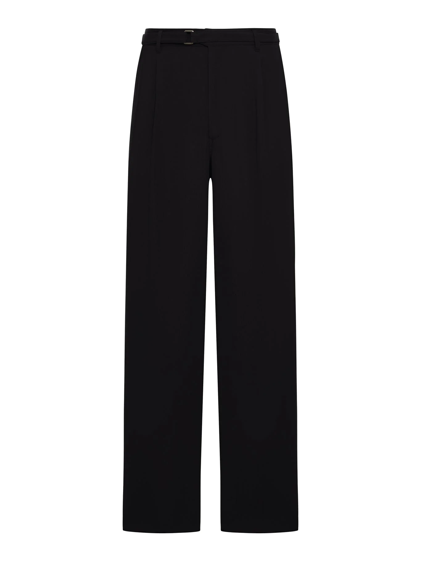 - Single-pleated trousers - Belt with metal buckle - Waistband with belt loops - Zip and button closure - Two side pockets - Two back welt pockets - Hem width: 26 cm - Color: Black Beauty Composition: Cupro 100% cupro Color code: UC001 BLACK BEAUTY GM003383TE10069
