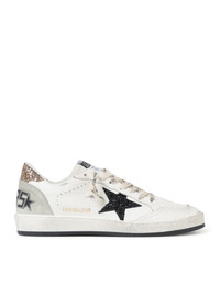Ball Star distressed glittered suede-trimmed leather sneakers White
