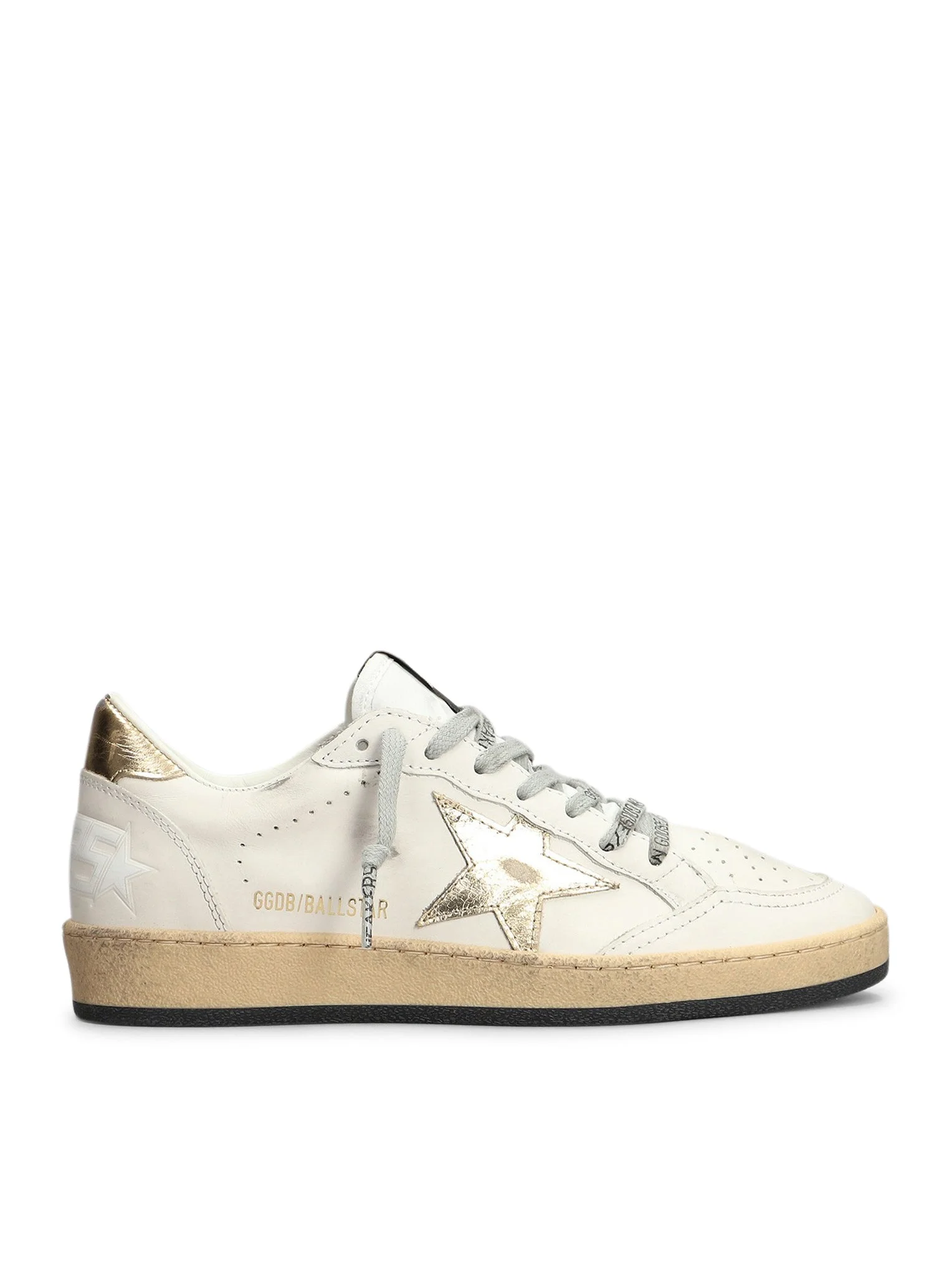 Upper: 92% cow leather, 8% polyamide Lining: 67% cow leather, 33% cotton Sole: 100% rubber White leather upper Gold laminated star Golden laminate heel Gray laces with logo Made in Italy Handmade Made in Italy Made in Italy Composition: Leather 67% Leather 33% Cotton 64039998 Color code: 80608 MILK GOLD GWF00117F000783