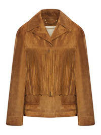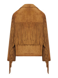 - Classic shirt collar - Concealed central button fastening - Leather fringes applied horizontally on the chest - Two front patch pockets - Fringes on the back that extend along the sleeves - Boxy fit - Defined shoulder - Lined Made in Italy Composition: Leather 100% Cow Leather Color code: 55678 TABASCO BROWN GWP02368P002160