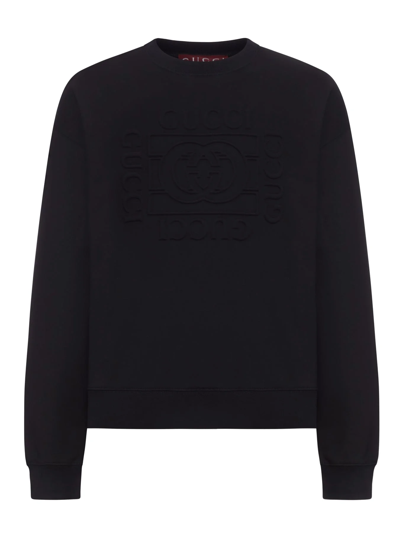 - Black brushed cotton jersey - Embossed GG Gucci interlock - Crew neck - Dropped shoulders - Ribbed trims - Length: 67.5cm; shoulders: 61cm; chest: 60.5cm; sleeve length: 62cm; size M - Color: Black Made in Italy Composition: Cotton 100 % cotton Color code: 1043 BLACK MIX 795510XJHN8