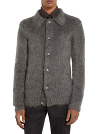 - Gray brushed mohair wool sweater - Pointed collar - Long sleeves - Ribbed cuffs and hem - Button closure - Regular fit - Length: 73 cm; shoulders: 39 cm; chest: 43 cm; sleeve length: 73 cm (size S) - Color: Gray Made in Italy Composition: Wool 67% wool 28% Polyamide Color code: 1087 URBAN GREY 849729XKE7O