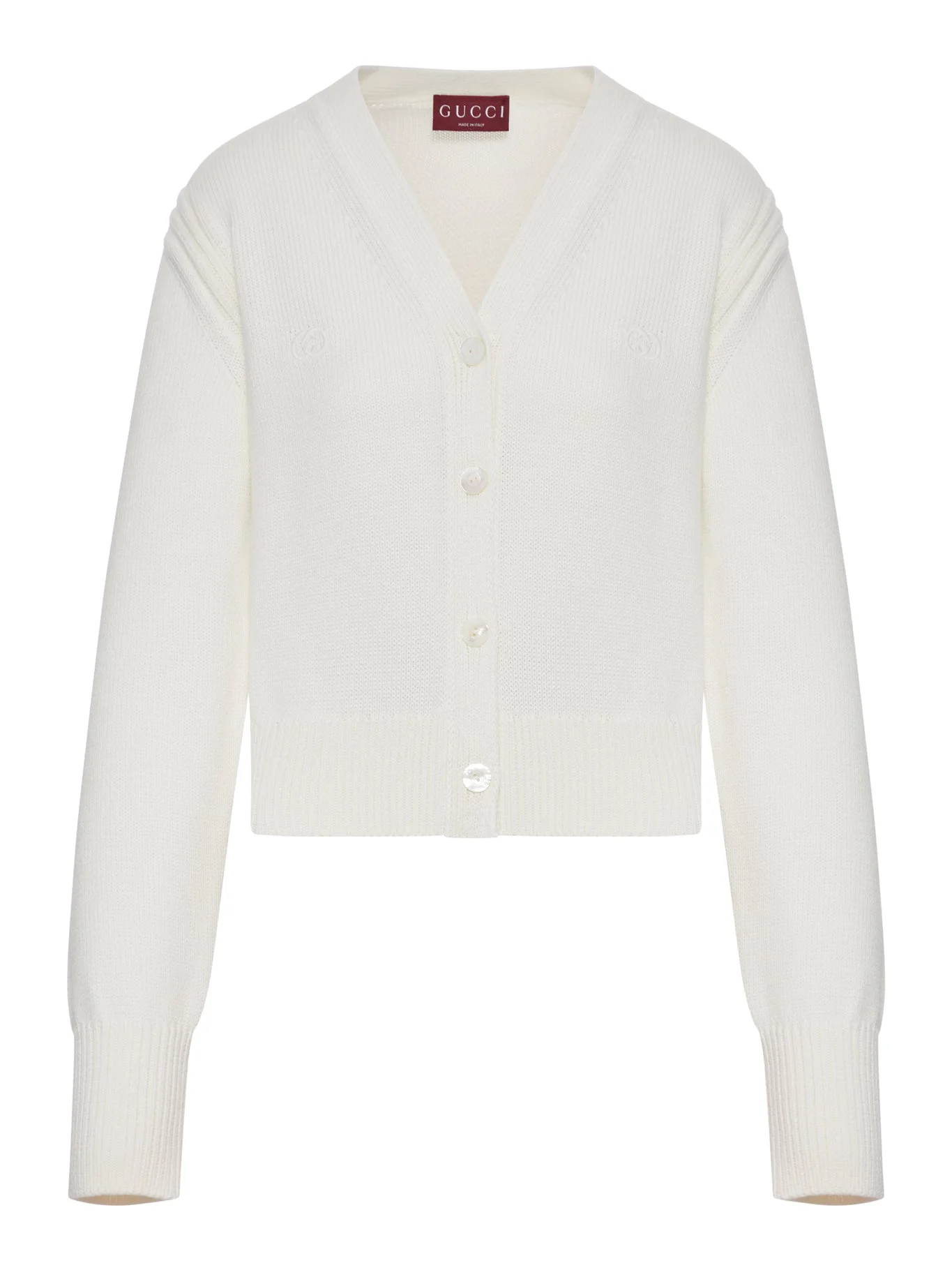 - V-neck - Front closure with tone-on-tone buttons - Embroidered logo on the chest - Long sleeves with ribbed cuffs - Ribbed hem - 100% cotton - Regular fit - Cropped length - Color: Natural Made in Italy Composition: Cotton 100% Cotton Color code: 9858 NATURALE 856136XKFFI