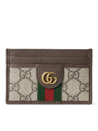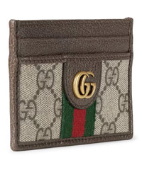 - Beige and dark brown GG monogram coated fabric - Dark brown leather trim - Gold-tone hardware - Brown moire lining - Double G - Web detail - Interior: 1 open compartment - Exterior: 4 card slots - W 11 cm x H 7 cm - Weight: approximately 30 g - Color: Beige/Ebony/Maple Made in Italy Composition: Polyurethane 82% Polyurethane 18% Polyamide Color code: 9746 BEIGE EBONY NEW ACERO 834795FAEOI