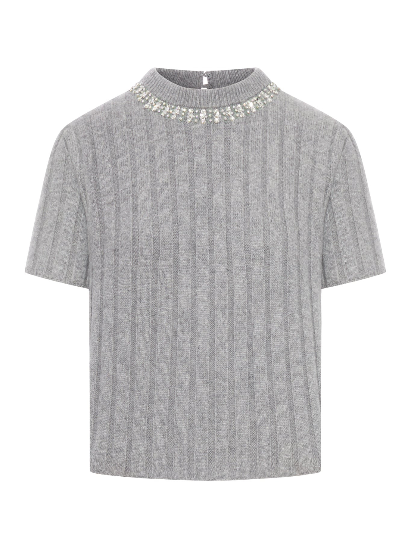 - Crew neck with jeweled details - Keyhole closure on the back with two buttons - Short sleeves - Regular fit - Wool blend - Color: Gray Made in Italy Composition: Wool 70% wool 30% Cashmere Color code: 1176 URBAN GREY MIX 850582XKFAZ