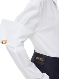 - Textured cotton poplin shirt - Double-layer sleeves - Anagram Pebble lapels and cufflinks - Classic collar - Concealed front button closure - French cuffs - Relaxed fit - Long length Made in Italy Composition: Cotton 98% cotton 2% polyester Color code: 2100 WHITE S540Y05XC9