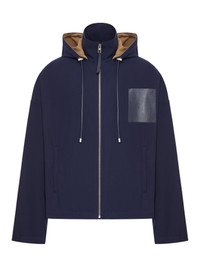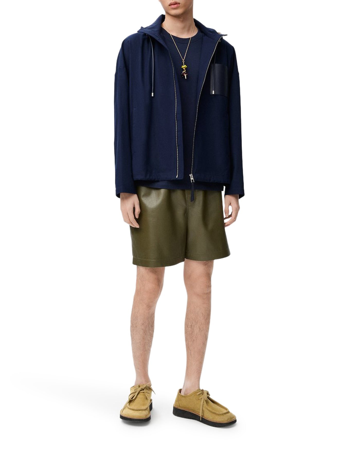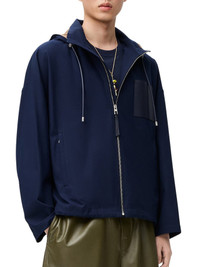 -Relaxed fit, regular length -Concealed rib knit cuffs -Leather chest patch pocket, zipped welt pockets -Unlined -Embossed Anagram placed on the chest patch pocket -LOEWE embossed leather patch placed on the hood Made in Italy Composition: Cotton 10% calf skin 90% cotton Color code: 4647 NAVY BEIGE H526Y02WCO
