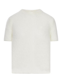 - Mohair blend sweater - Medium weight - A-line silhouette - Back button closure - Crew neck - Anagram embroidery on the chest - Regular fit - Cropped length Made in Italy Composition: Mohair 64.35% Mohair 28.71 %polyamide 4.95% wool 1% polyester 0.99% elastane Color code: 2100 WHITE S540Y55K48
