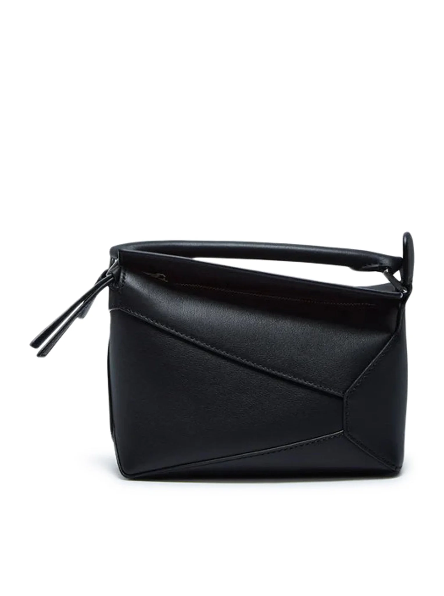 - Loewe Mini Puzzle Edge Bag - Made of soft black grained leather - Adjustable and removable shoulder strap - Zip closure with leather pull - Herringbone cotton canvas lining with embossed anagram - Color: Black Made in Spain Composition: Calf Leather 100% calfskin Color code: 1100 BLACK A510P88X49 CARRYOVER
