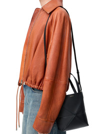 - Shoulder, crossbody or hand carry - Detachable and adjustable strap - Suede lining - Gold embossed LOEWE Made in Spain Composition: Calf Leather 100% Calf Leather Color code: 1100 BLACK A657V25X01