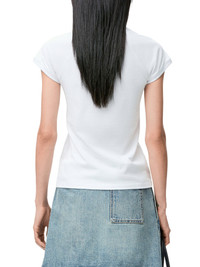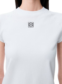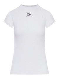 - Short-sleeved T-shirt - Made of stretch cotton blend jersey - Contrasting embroidered Anagram motif on the front - Raglan sleeves - Micro-ribbed crew neck and cuffs - Slim fit - Color: White Made in Portugal Composition: Cotton 57,18% Cotton 35,94% Viscose 3,88% elastane 3% polyester Color code: 2100 WHITE S359Y22XA7