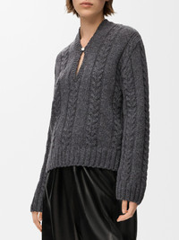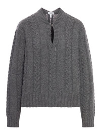 - Textured mouline wool sweater - Medium weight - V-neck - Engraved anagram closure - Regular fit - Standard length - Ribbed collar, cuffs, and hem - Leather tab with anagram motif on the side - Color: Grey Made in Italy Composition: Wool 95% wool 3% calf leather 1% polyamide 1% Polyurethane Color code: 1120 GREY S540Y14KGU