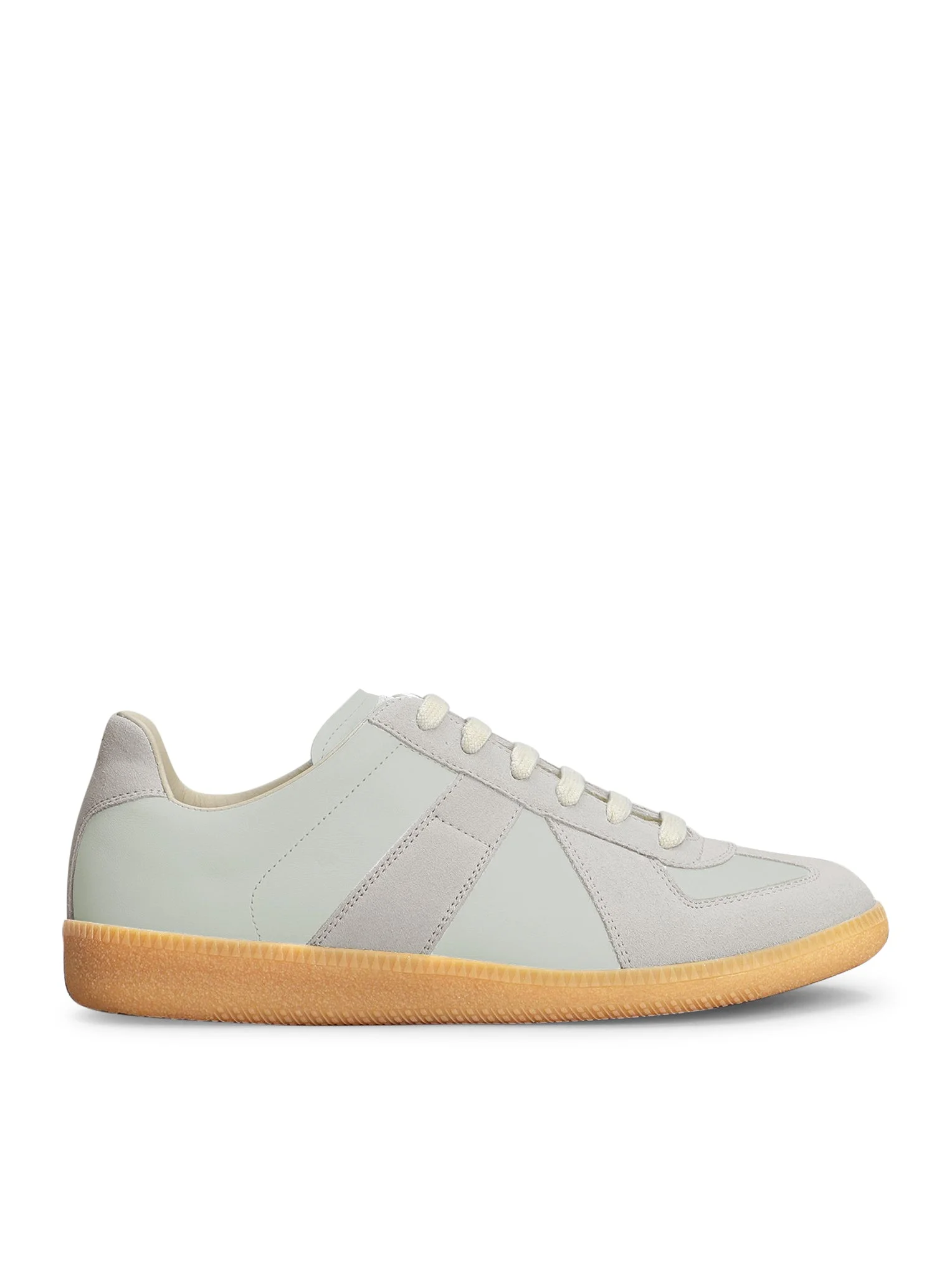 - Lace-up sneakers in nappa leather and split leather - Contrasting sole - Maison Margiela logo label on the tongue - White stitching on the back - Internal Replica label - Internal elastic - All-over Maison Margiela logo on the insole - Upper: 100% calf leather - Contrast: 100% calf leather - Lining: 100% cotton - Sole: 100% rubber - Color: Griffin Grey Made in Italy Composition: Leather 100% Calf Leather Color code: T8137 GRIFFIN GRAY S57WS0236P1895