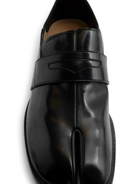- Upper: 100% brushed calf leather - Lining: 100% lamb leather - Sole: 100% leather - Tabi cut on the toe - White stitching on the back - Double fit soft heel - Brand logo on the insole - Printed internal logo Made in Italy Composition: 100% Pbv Color code: H8396 BLACK S57WR0117P3827