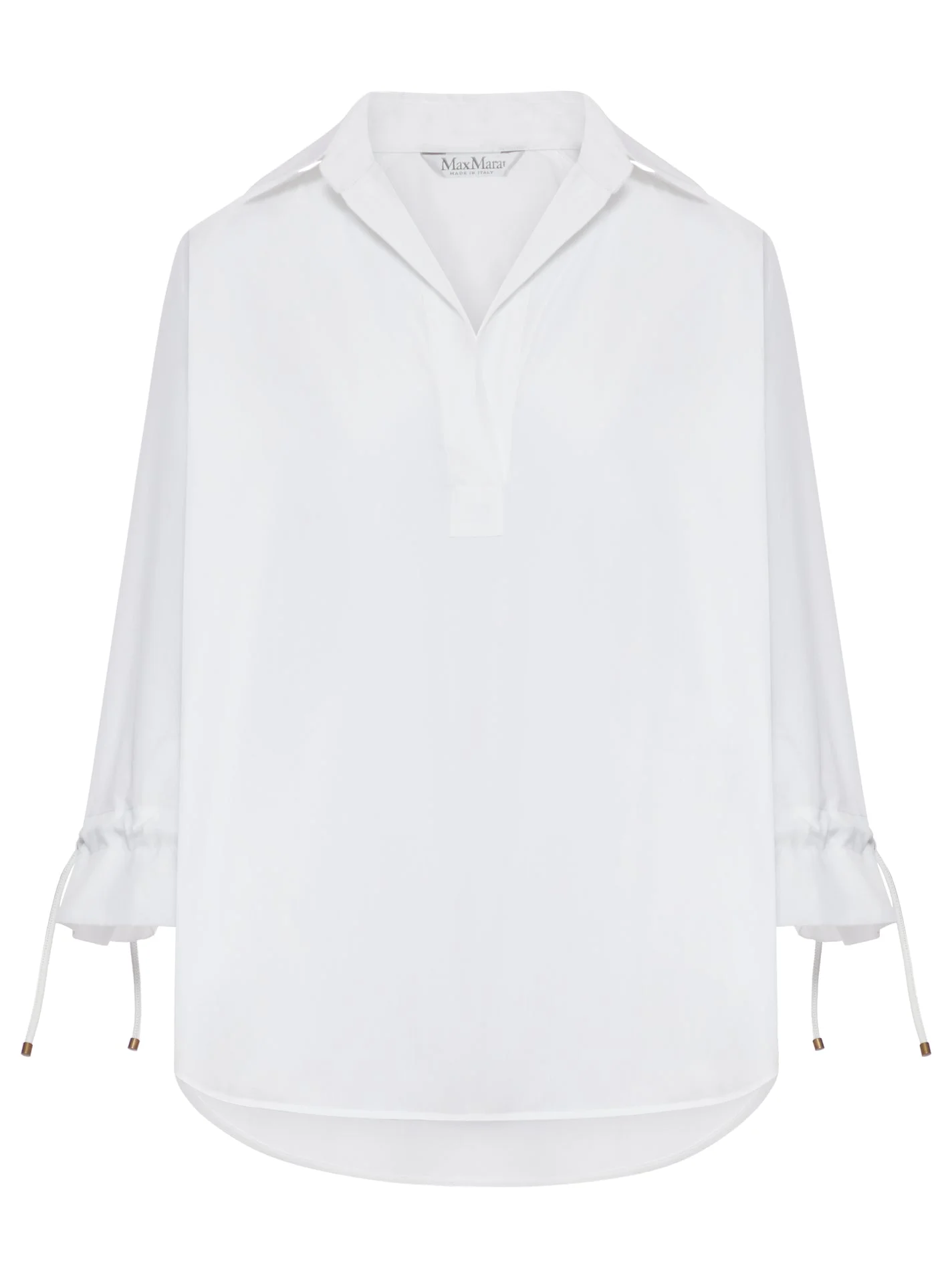 - Open-front polo collar - Raglan sleeves - Rounded hem with side slits - Longer at the back - Oversized - Tubular leather drawstrings at the cuffs with horn eyelets and metal ends - Cotton poplin - Loose fit - Unlined - Color: White Made in Italy Composition: Cotton 100% cotton Color code: 001 OPTIC WHITE 2611191062600