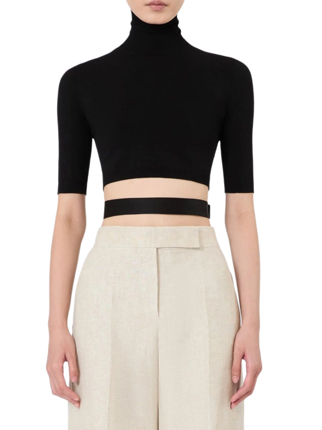 - High neck - Elbow-length sleeves - Turtleneck - Cropped cut - Slim fit - The model is wearing a size M and is 179 cm tall - Color: Black Made in Italy Composition: Viscose 62% viscose 38% polyester Color code: 009 BLACK 2611361213600