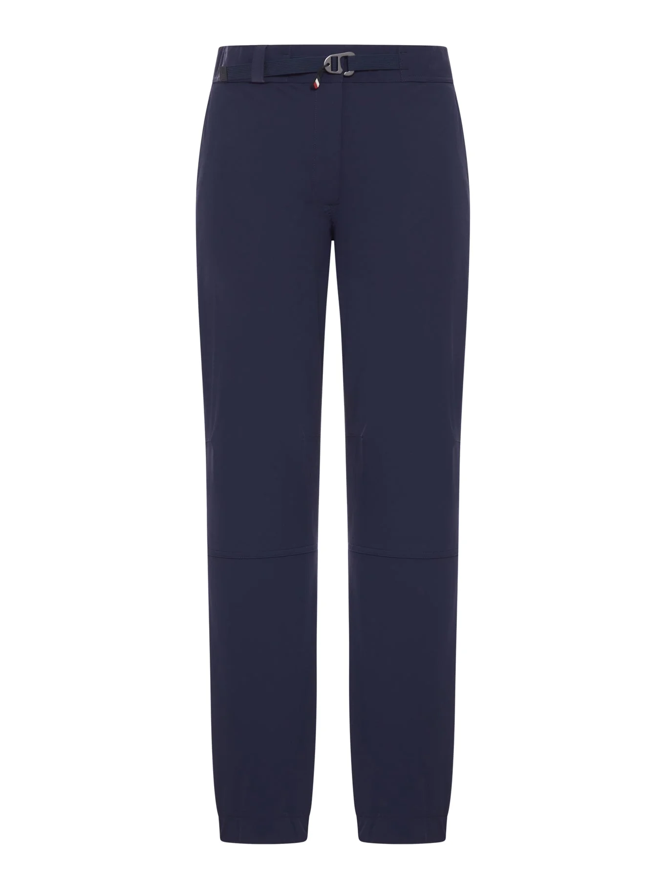 - High-performance stretch technical fabric - Waist with integrated adjustable belt and technical buckle - Concealed front zip closure - Regular fit - Straight leg - Strategic reinforcements and paneling - Finished leg cuffs - Logo applique on the back - Color: Blue Made in Italy Composition: Polyamide 100% polyamide Color code: 772 BLUE L10982A00003597ED