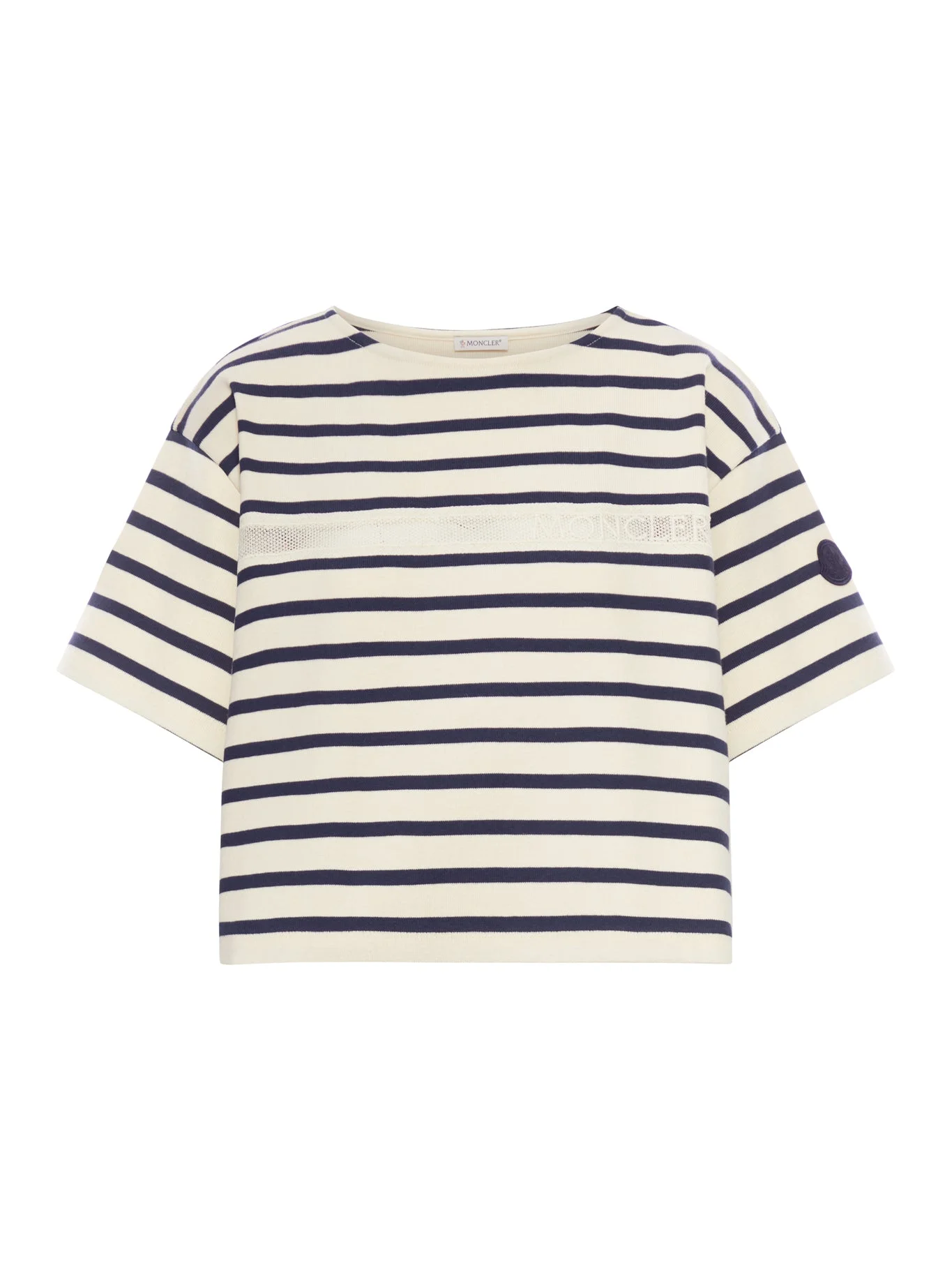 - Round neck - Short sleeves - Dropped shoulders - Contrasting logo on the sleeve - Perforated band on the front with logo - Color: White/Blue Made in Turkey Composition: Cotton 100% cotton Color code: F07 WHITE L10938C0005089BEB