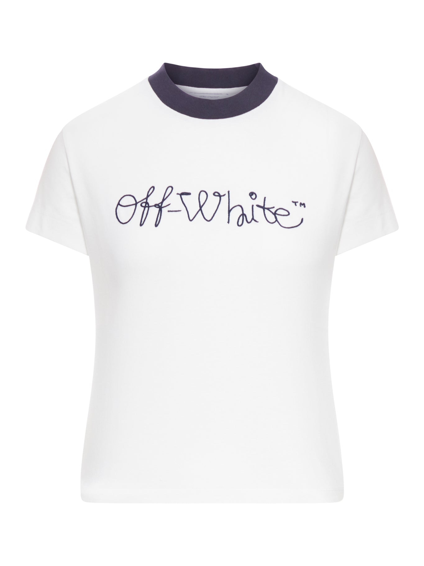 - Contrast crew neck - Contrasting EMB logo on the front - Short sleeves - Straight hem - Slim fit Made in Portugal Composition: Cotton 95% Cotton 5% Elastane Color code: 0148 WHITE BLUE IRIS OWAA112F25JER001