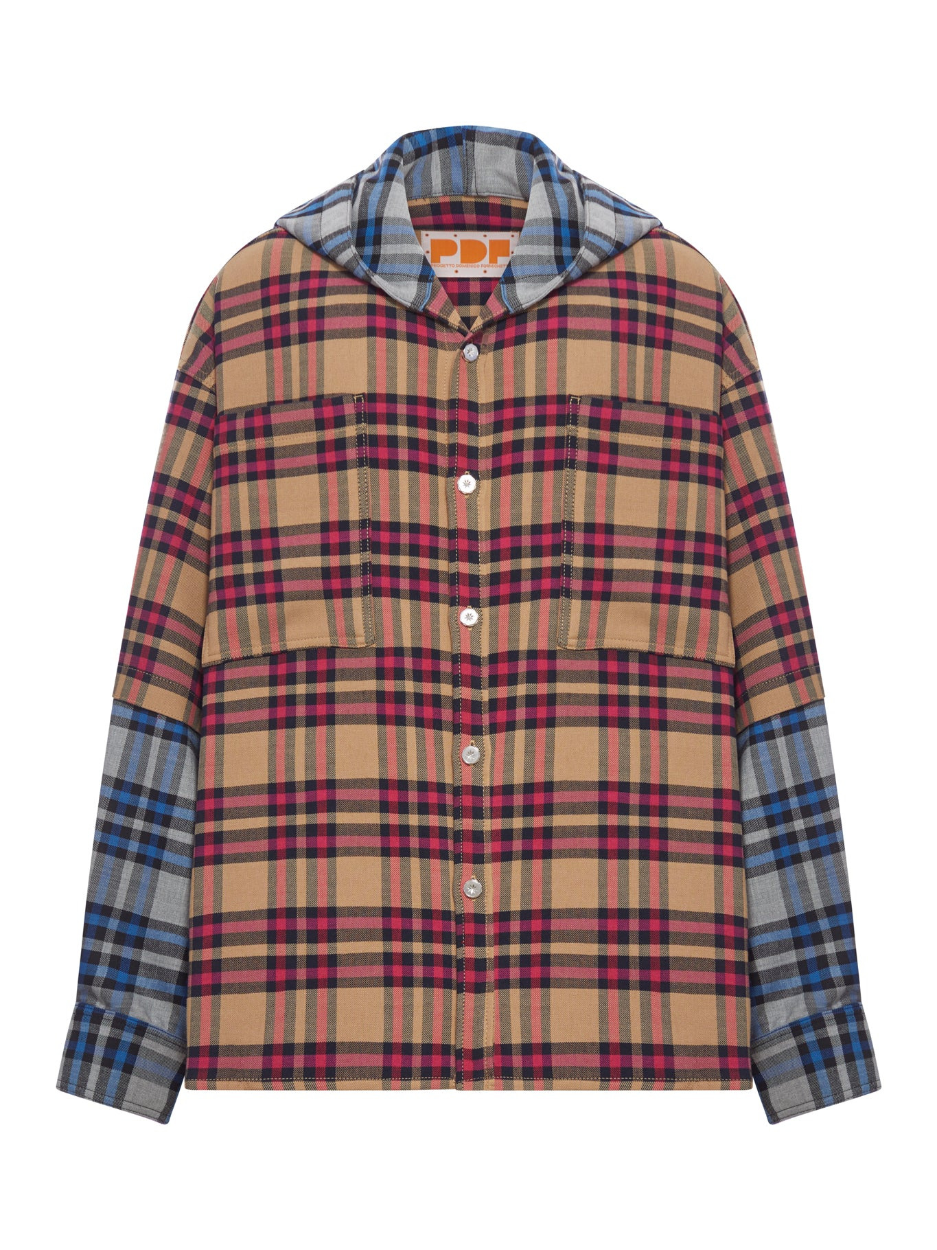 - Hood - Front button closure - Two front patch pockets - Contrasting double fabric - Tartan pattern - Long sleeves - Buttoned cuffs - Straight hem Made in Italy Composition: Polyester 52% Polyester 23% Wool 23%Viscose 2%Elastane Color code: NOWAS NO WASH DFM06002TF133NOWAS