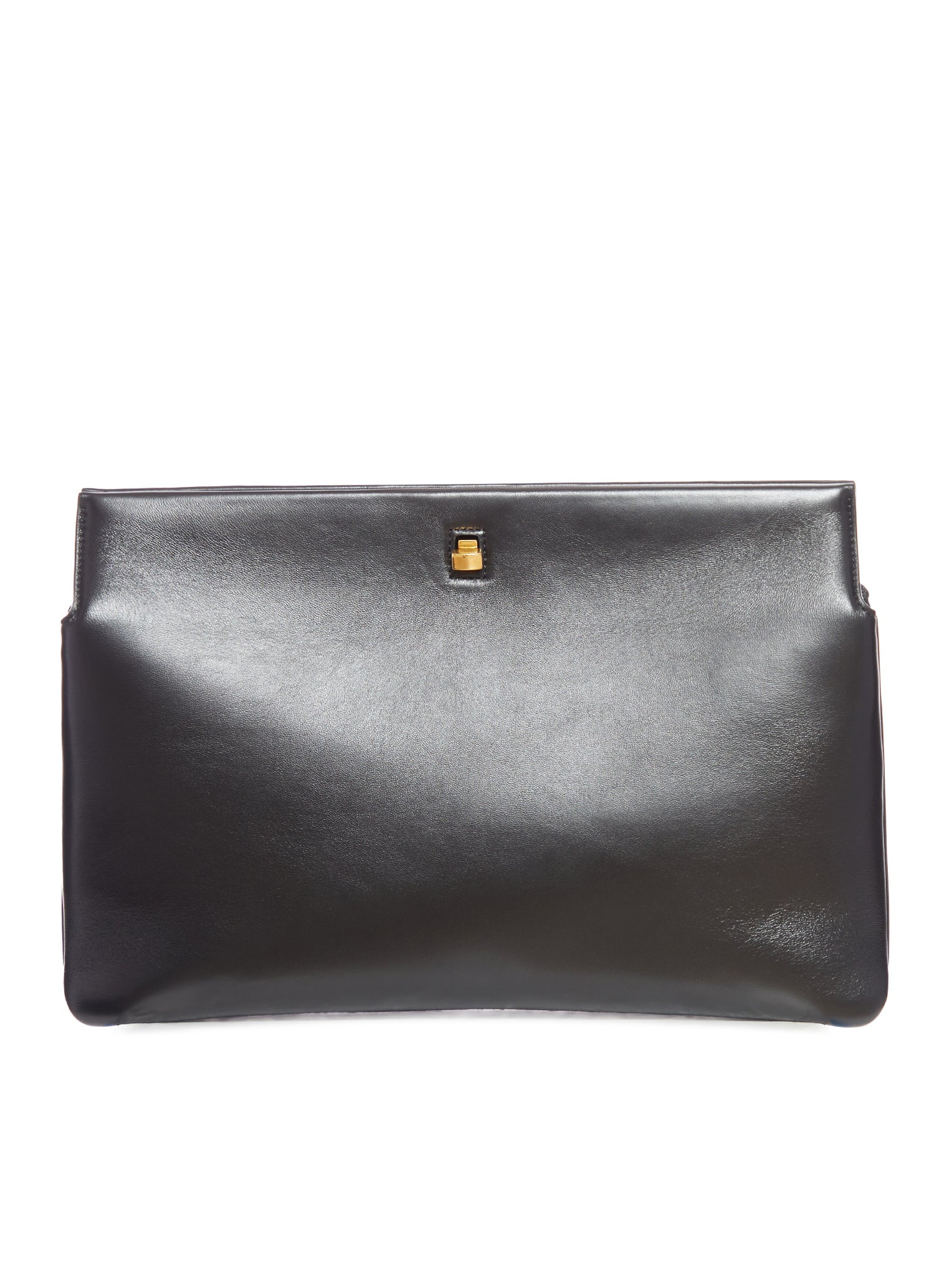 - Tone-on-tone stitching - Lined - Gold-tone hardware - Hook closure - Three compartments - Black Made in Italy Composition: Calf Leather 100% Calf Leather Color code: 900BKG BLACK GOLD AB41LT0088900BKG