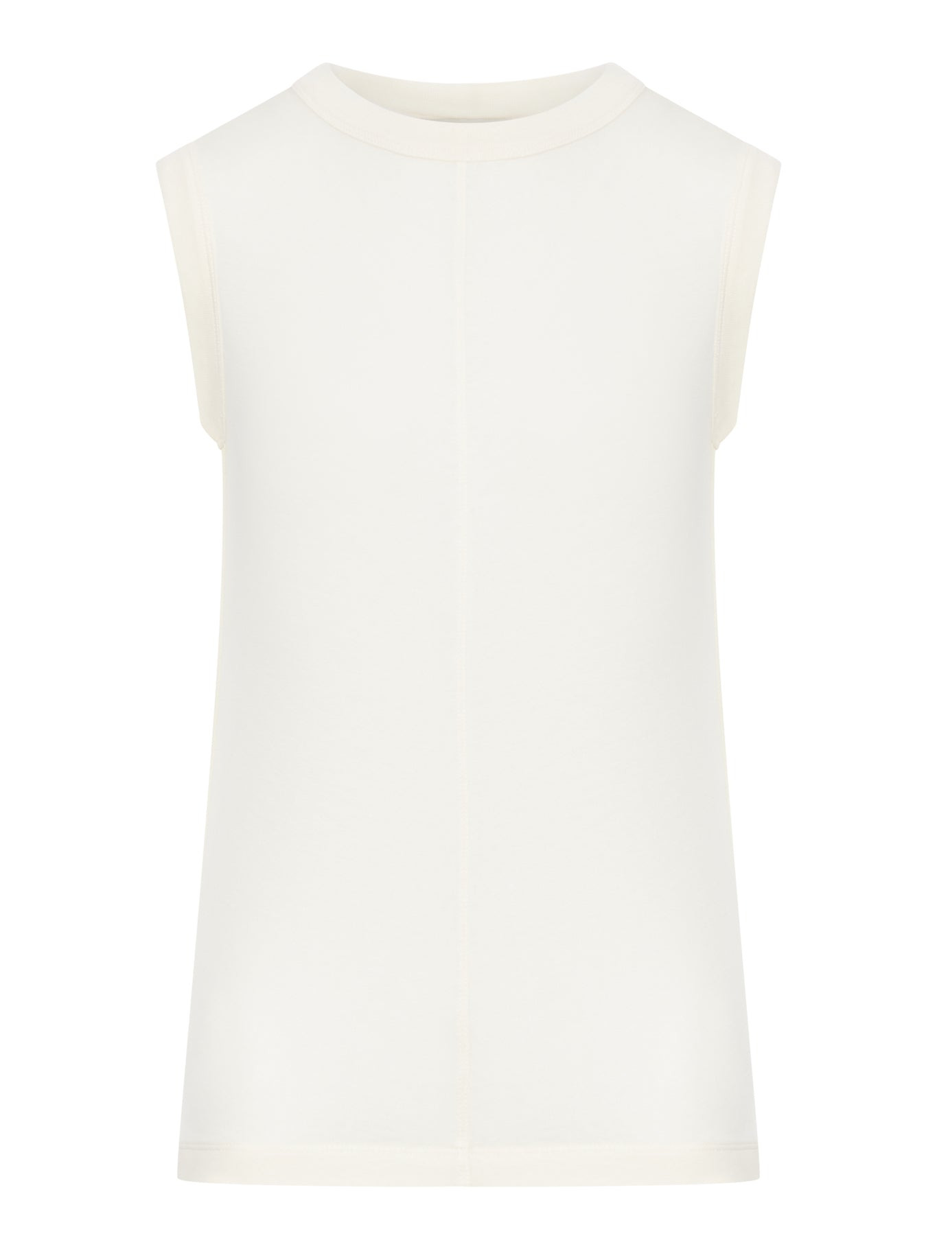 - Crew neck - Semi-sheer - Opaque ribbed collar - Rolled cuffs and hem - Vanilla cotton tape on the seams - Cotton inserts on the shoulders - Double layer Made in Portugal Composition: Cotton 100% Cotton Color code: 104IV IVORY CT122CO3128104IV