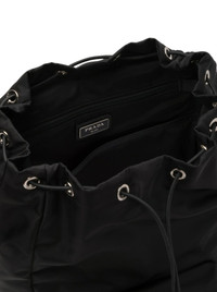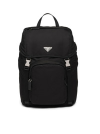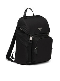 -Leather handle -Adjustable suspenders in nylon tape -Enamelled metal triangle logo on flap -Closure with flap and snap system -Four external pockets with zip -Back backrest in padded mesh fabric -Interior with zip pocket and patch pocket -Re-Nylon lining -Height: 45cm -Length: 17cm -Width: 27cm Made in Italy Composition: Polyamide 100%POLYAMIDE 14X40X29 CM HANDLE: 7 CM STRAP: 47 CM Color code: F0002 BLACK 2VZ135VHOL2DMG CARRYOVER
