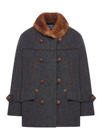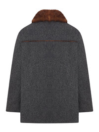 - Wide shearling collar - Double-breasted front closure with woven leather buttons - Two front flap pockets - Adjustable straps on the sleeves - Matching buttons on the cuffs - Contrasting brown leather trim - Slightly oversized fit - Horizontal leather insert on the back - 100% wool - Color: Anthracite Made in Italy Composition: Wool 100% wool Color code: F0308 ANTHRACITE P653SPSOOO17VQ