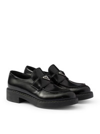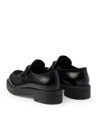 -Upper with leather strap -Triangle logo in enamelled metal -50 mm monobloc rubber sole with fire-branded logo -Welt in serrated effect printed rubber Made in Italy Composition: Calf Leather 100% calf Leather Color code: F0002 BLACK 1D246MFG050ULS