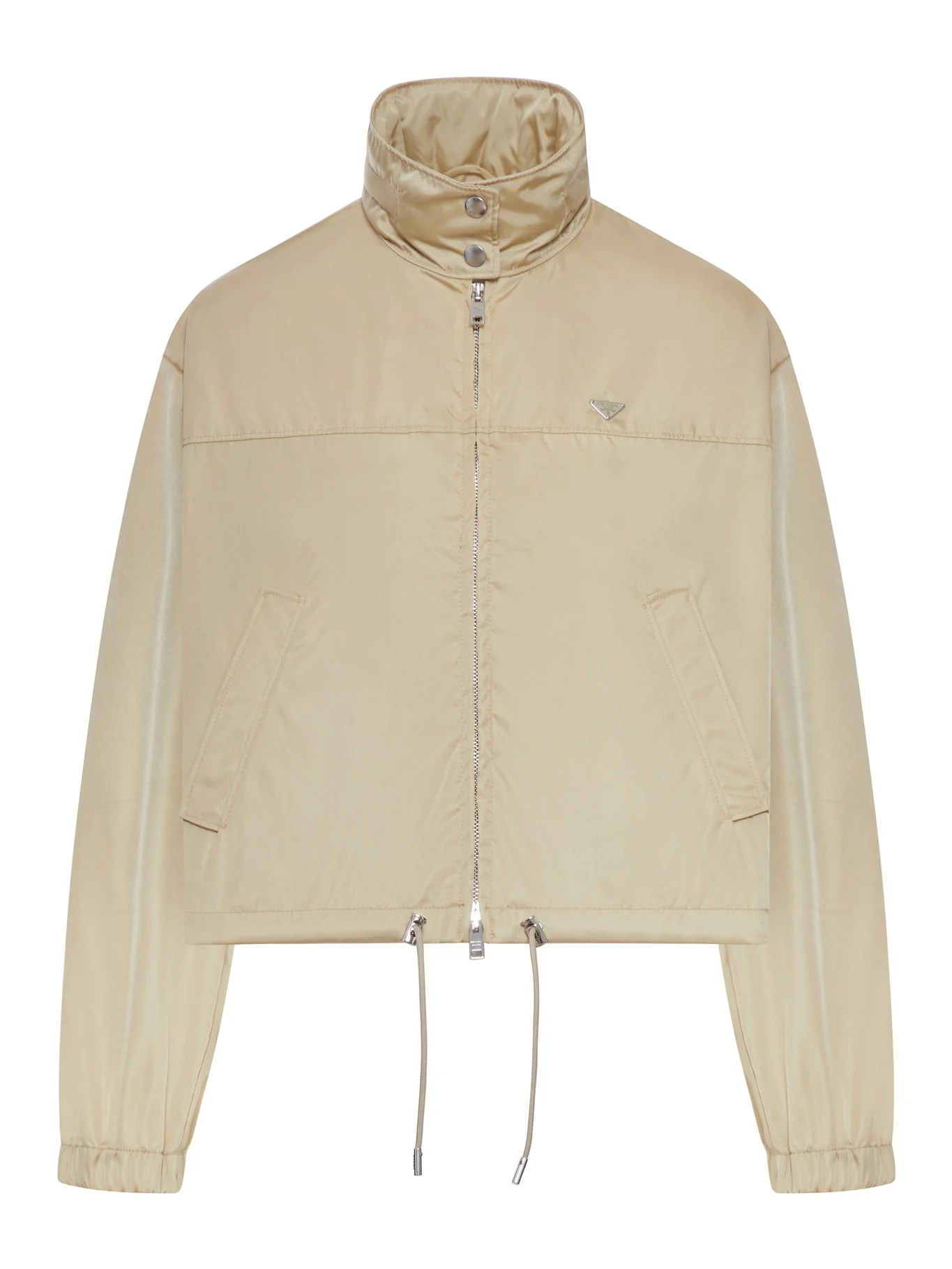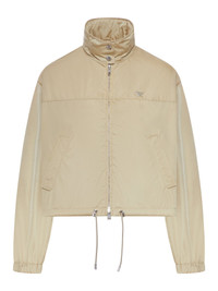 - High collar with hidden zip and internal hood - Two-way zip and two snap buttons - Tone-on-tone enamel triangle logo - Two slanted front pockets - Adjustable drawstring hem - Long sleeves with elasticated cuffs - Cropped fit - Technical fabric - Color: Desert Made in Romania Composition: Polyamide 100% polyamide Color code: F0F24 DESERT 292351SOOO1WQ8