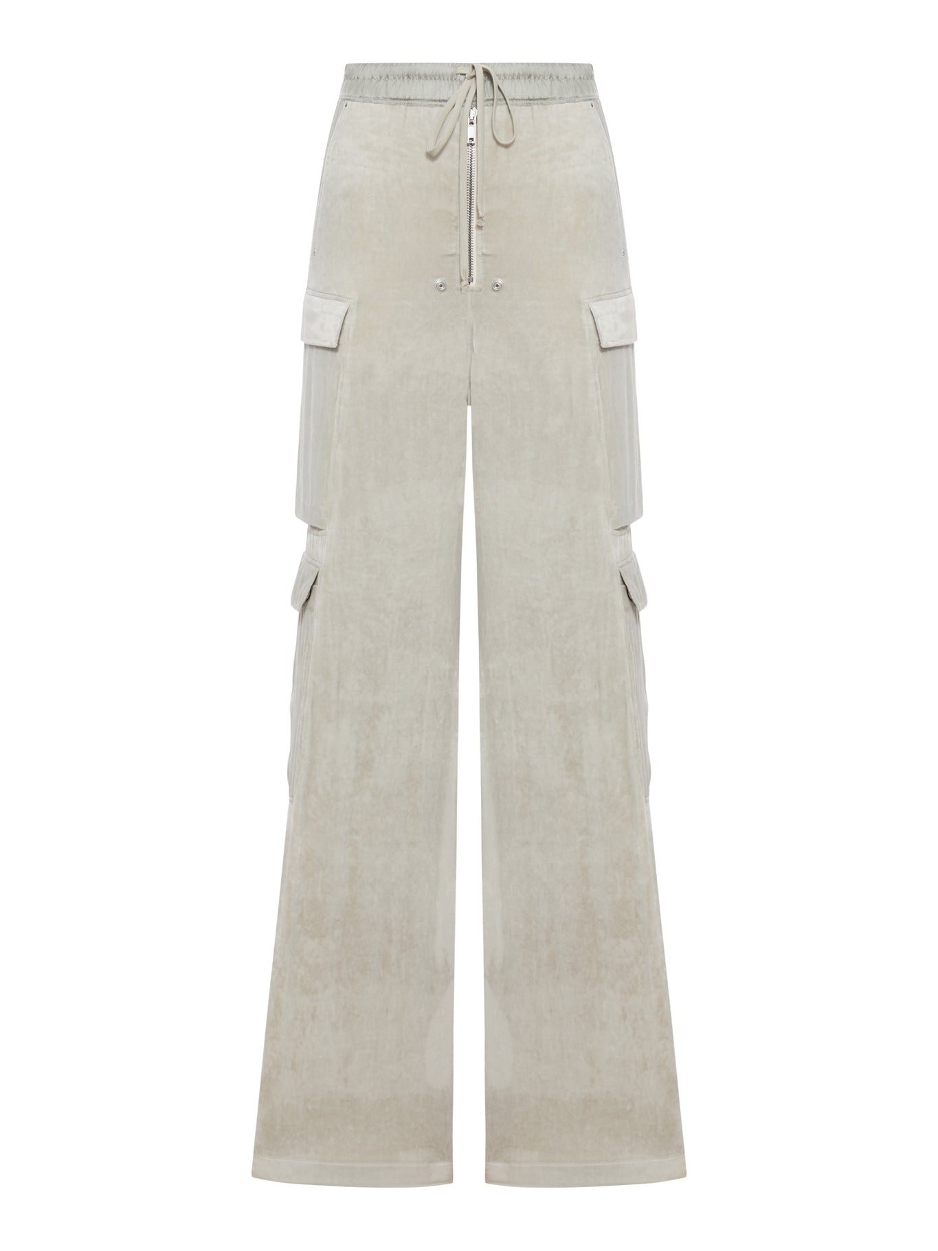 - Elasticated waist with drawstring - Fake metal zipper on the front - Four patch pockets on the sides - Two welt pockets on the back - Velvet-effect workmanship - Straight hem Made in Italy Composition: Viscose 82% Viscose 18% Silk Color code: 08 PEARL RP02E4327V