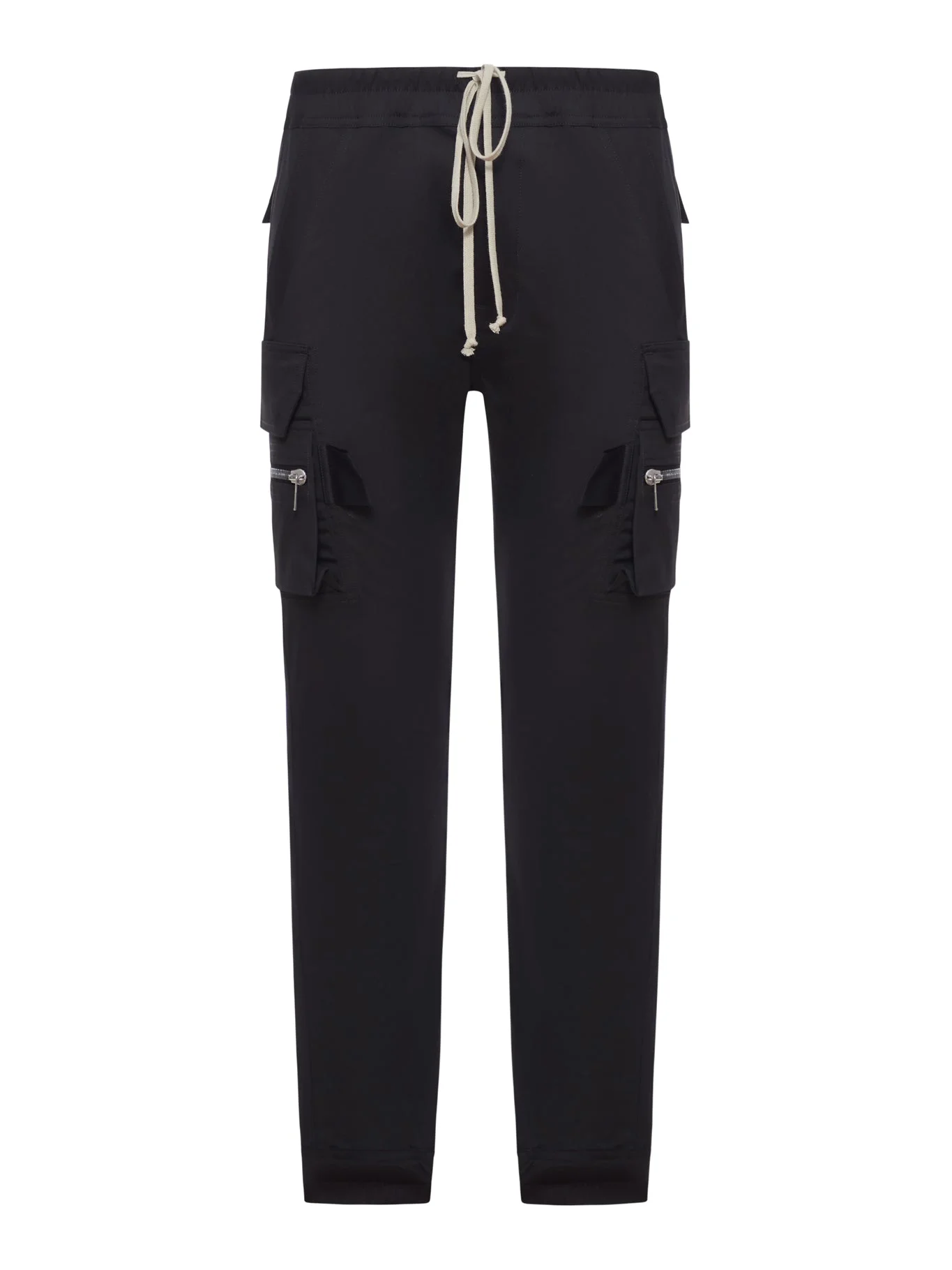 - Elasticated waist with drawstring - Elasticated ankles - Two square cargo pockets on the thigh with zippers - Two square back pockets - All pockets have flaps, hook-and-loop closures, and topstitching - Made from GOTS-certified organic cotton - Slim fit - Color: Black Made in Italy Composition: Cotton 97% cotton 3% elastane Color code: 09 BLACK RU02E1396TE