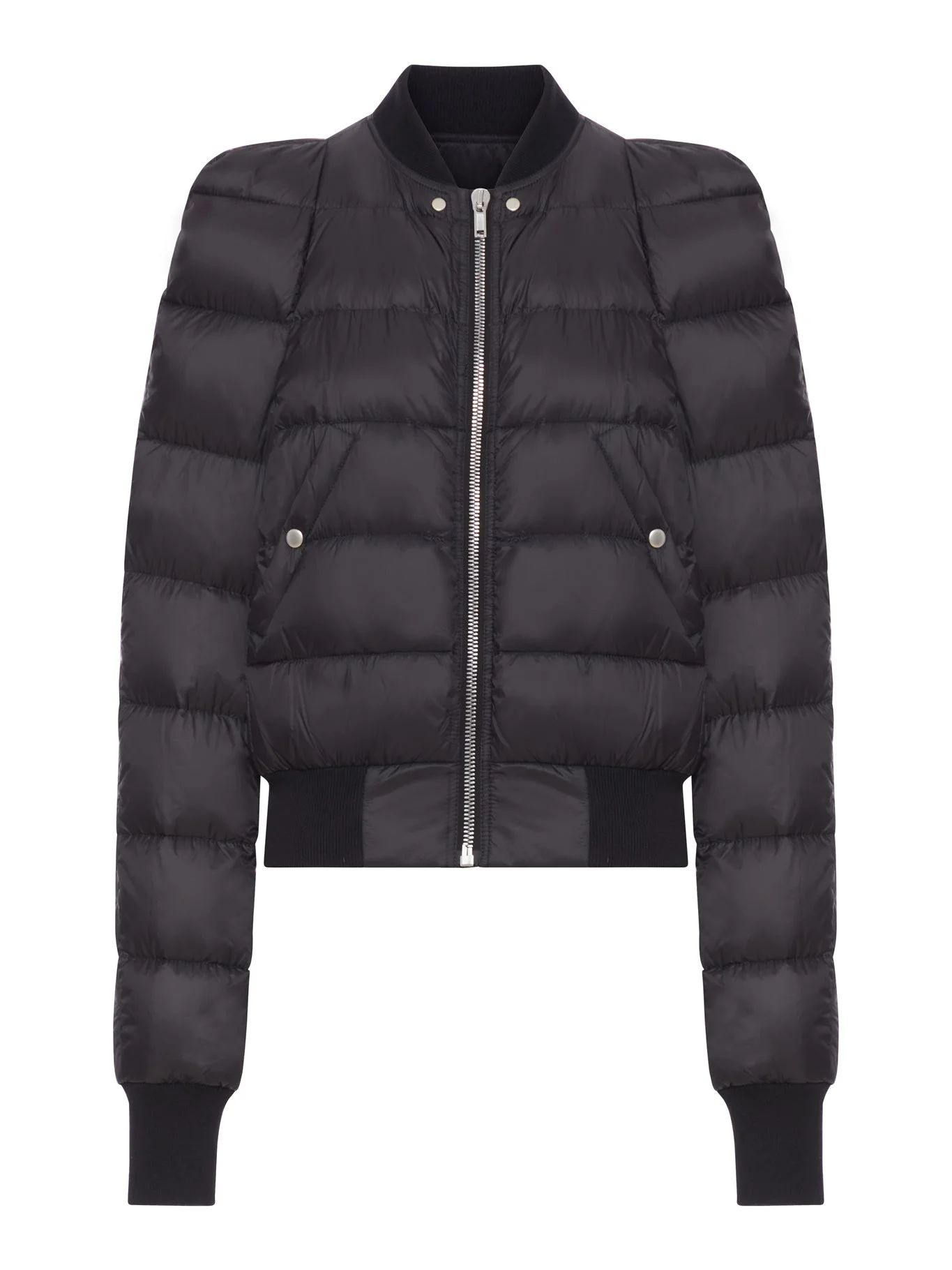 - Padded down jacket - Ribbed cotton collar - Front zip closure - Two front slanted pockets with snap buttons - Long sleeves - Ribbed cotton cuffs - Elasticated ribbed cotton hem - Color: Black Made in Italy Composition: Nylon 100% Nylon Color code: 09 BLACK RP02E4777NPD1