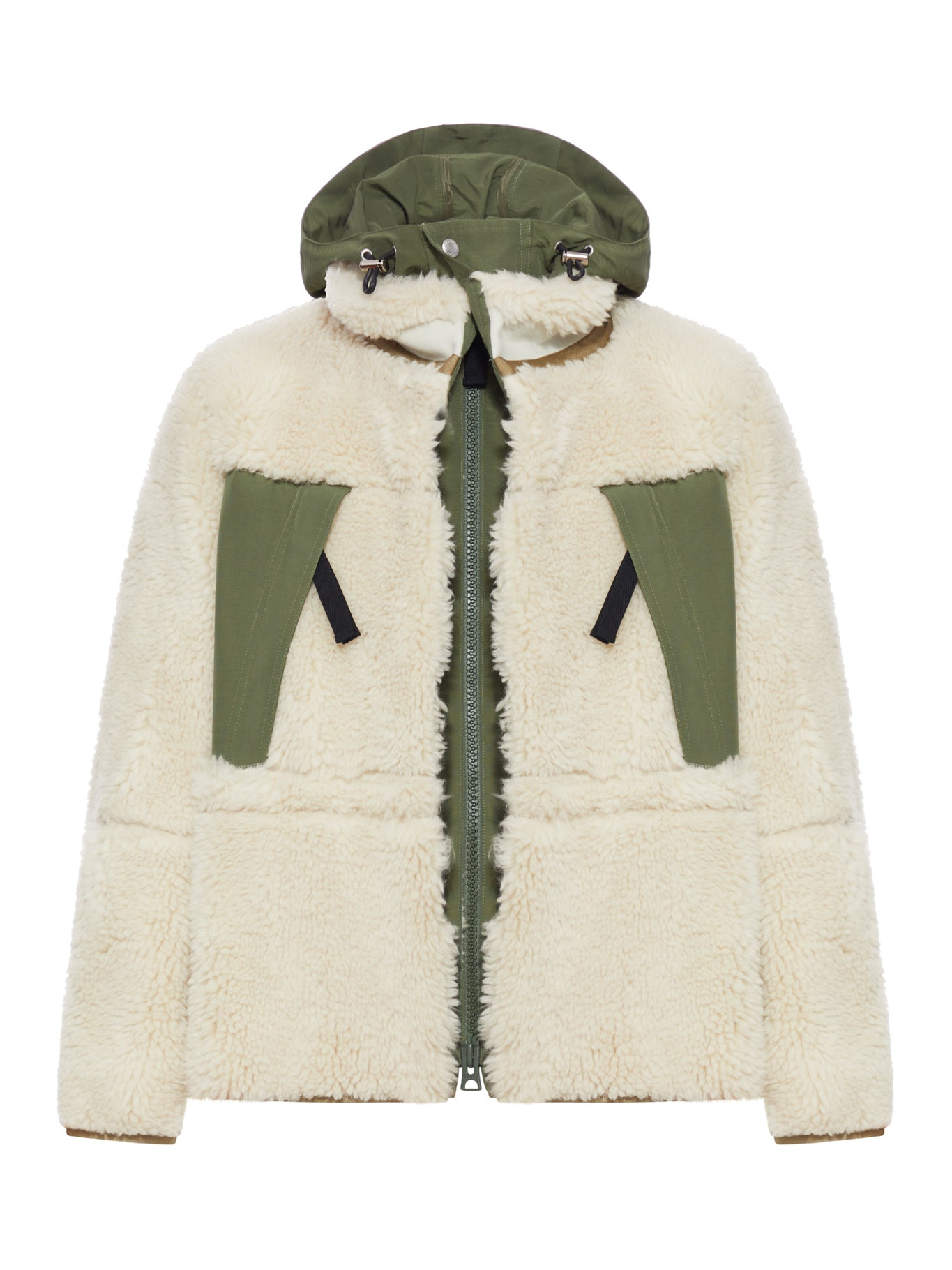 -Front button closure with two-way zip -Hood with adjustable drawstring -Zipped handwarmer pockets -Nylon inserts Made in China Composition: Wool 100% wool Color code: 063 ECRU KHAKI 2503854M