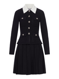 - Openwork knit dress - Contrast collar - Jewel buttons - Pleated skirt - Stretch fabric - Front button closure - Model is 178 cm tall and wears a size S - Color: Black Made in China Composition: Viscose 73% Viscose 16% Polyester 10% Polyamide 1% Elastane Color code: BLACK RS26109SB
